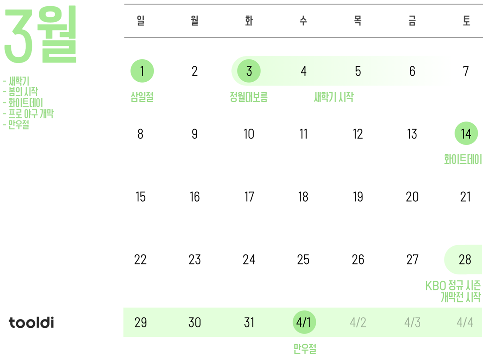 툴디와 함께, 3월을 준비해 보세요. ✨