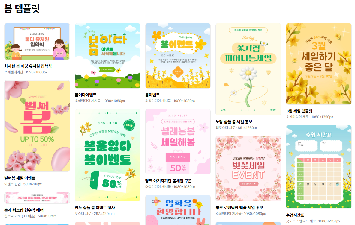- 비주얼 요소: 새싹, 나뭇잎, 햇살, 구름 등 자연 모티프를 포인트로 활용해 계절감 강화