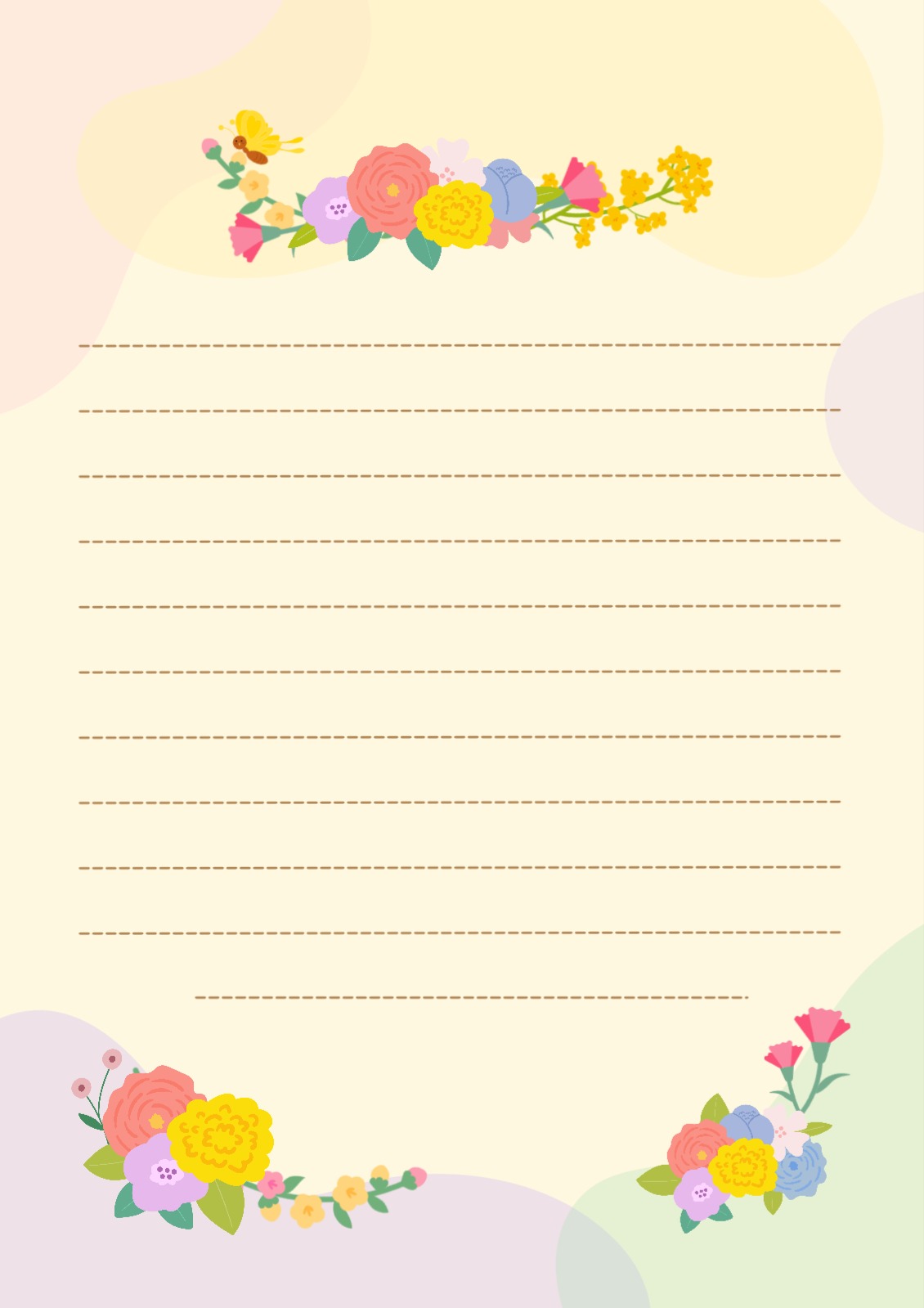 화사한 노란색 봄 꽃 편지지