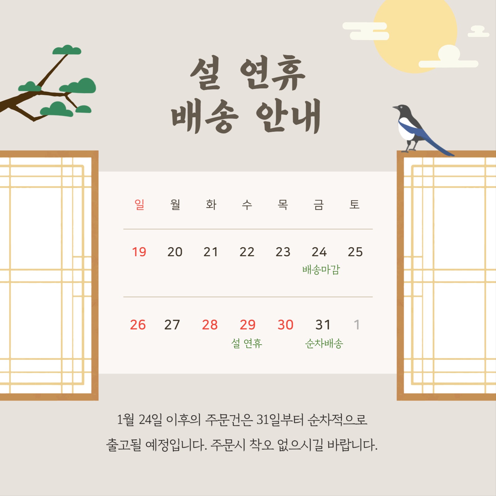 설 연휴 배송 안내 게시물