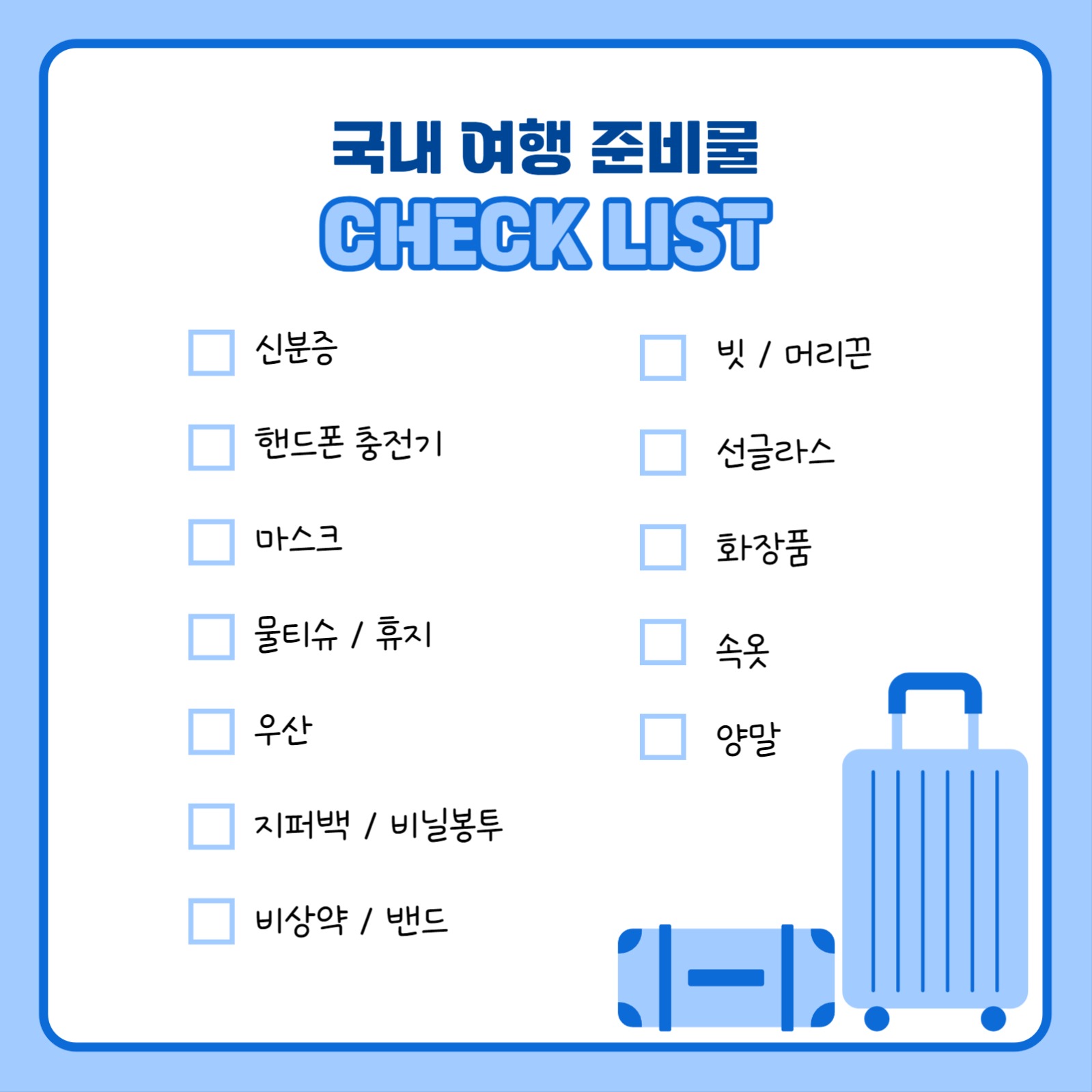 국내 여행 준비물 체크리스트