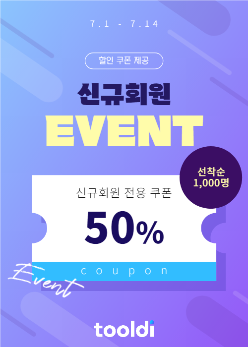 눈길을 사로잡는 이벤트 팝업 배너! 이벤트를 효과적으로 알리고 싶다면 툴디 이벤트 팝업 템플릿으로 배너를 빠르게 만들어보세요!