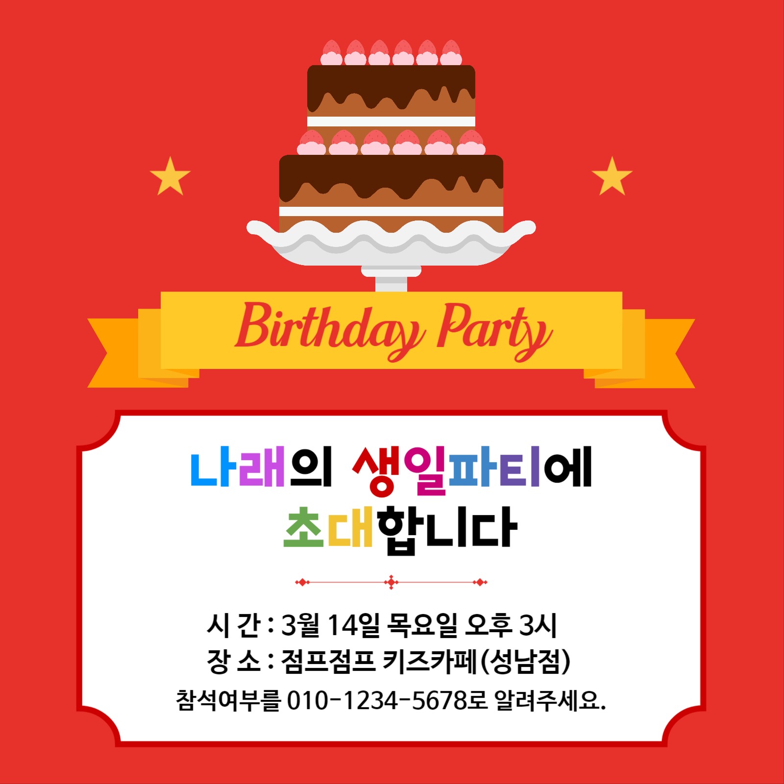 생일 축하 카드 초대장