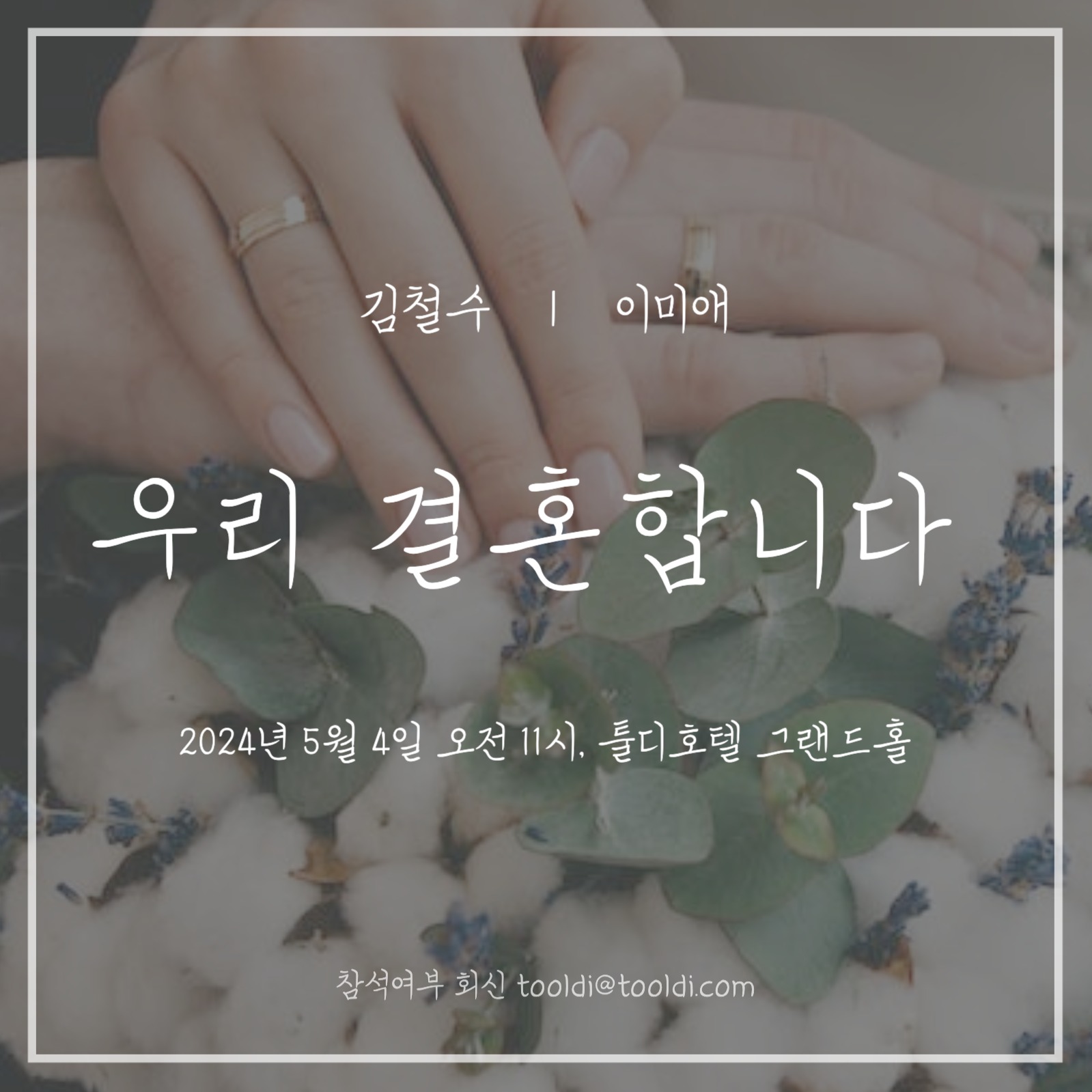 셀프 청첩장/초대장 만들기를 고려중이라면? 툴디의 가로형 초대장 템플릿으로 나만의 감성을 담은 초대장을 직접 만들어보세요.