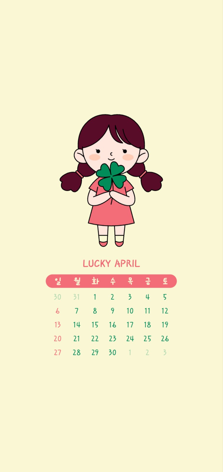 네잎 클로버 소녀 4월 달력 배경화면