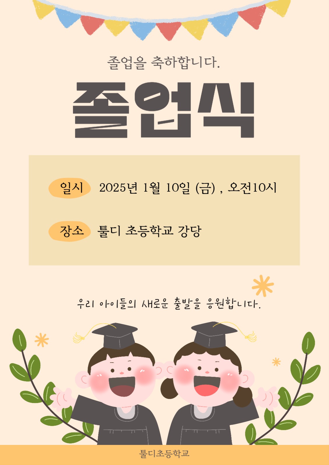 귀여운 어린이 일러스트 졸업식 포스터