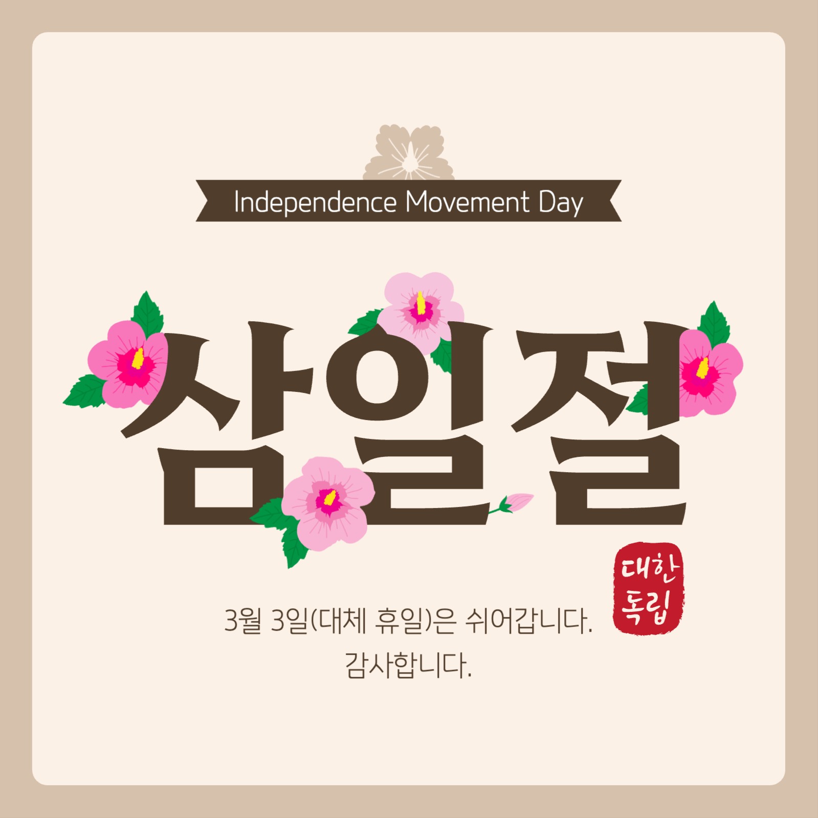 삼일절 휴무 안내 게시물