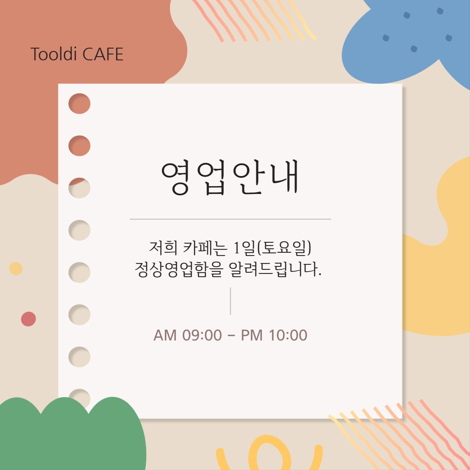 베이지색 카페 영업안내 공지사항