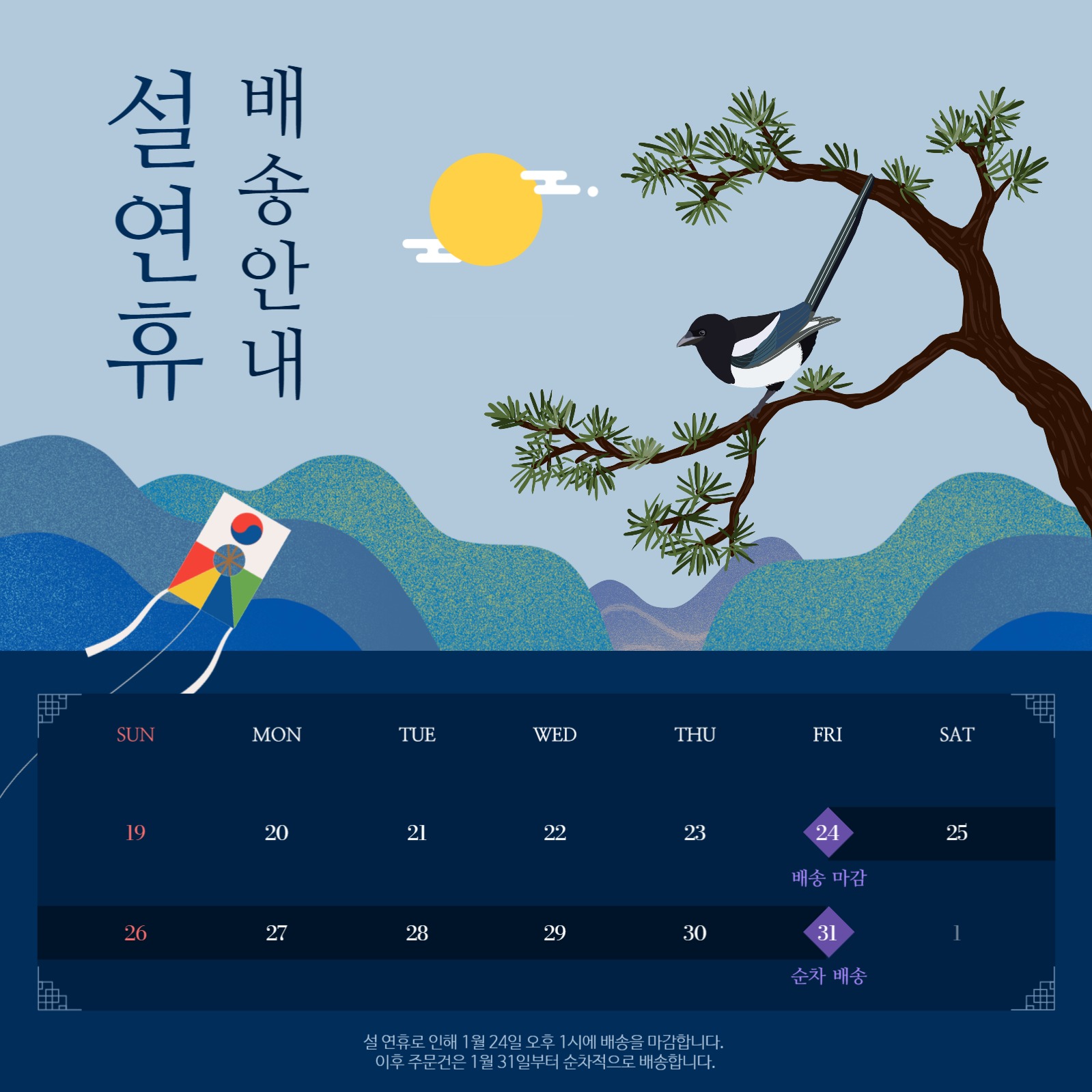 설 연휴 배송 안내