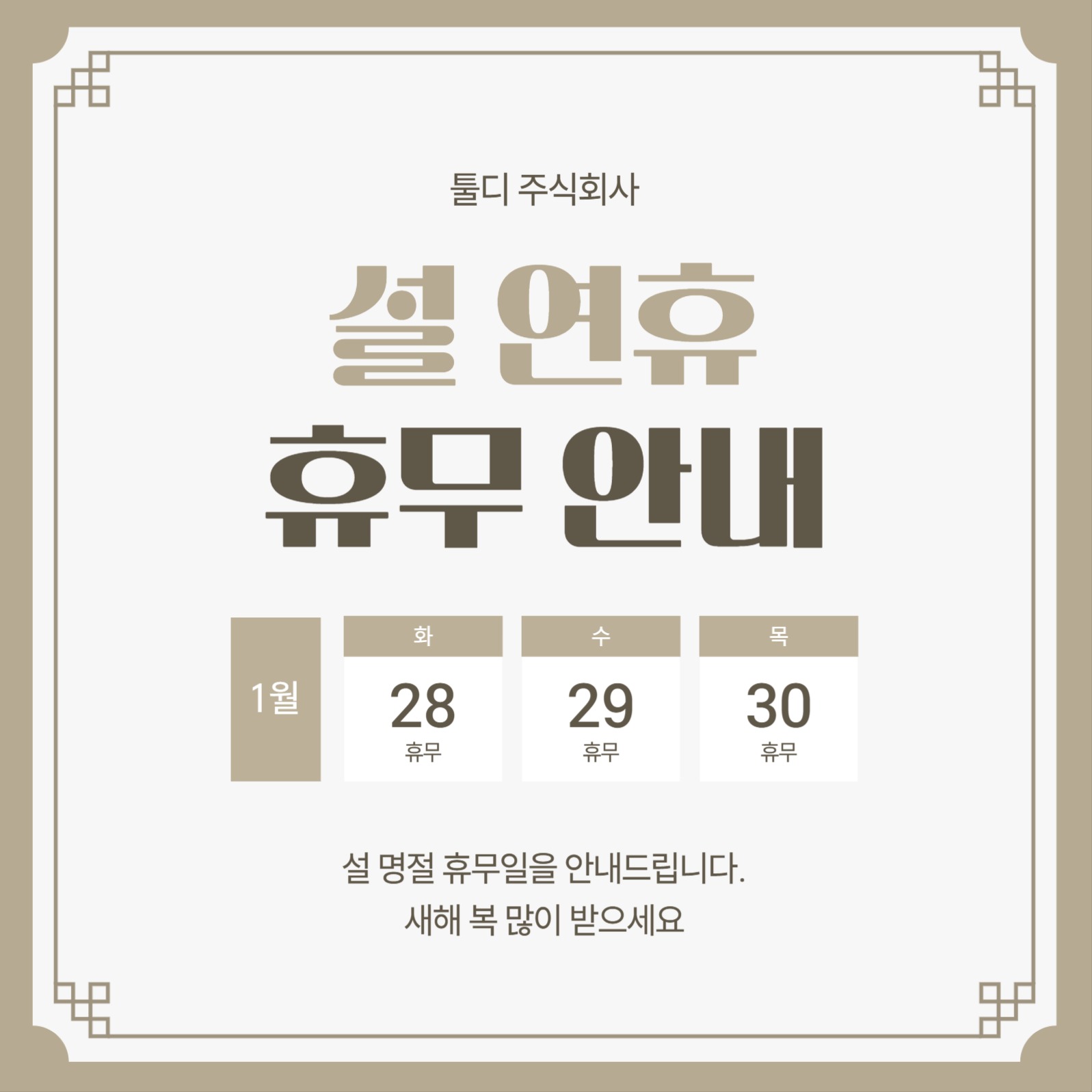 설 휴무 안내 소셜미디어 게시물