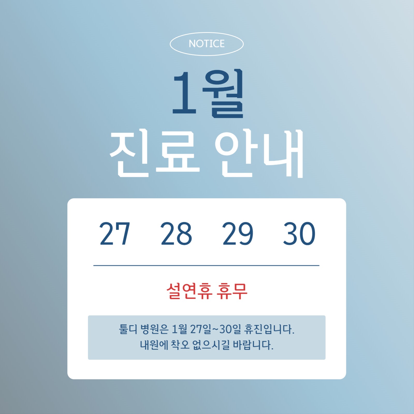 깔끔한 1월 진료 안내 이미지