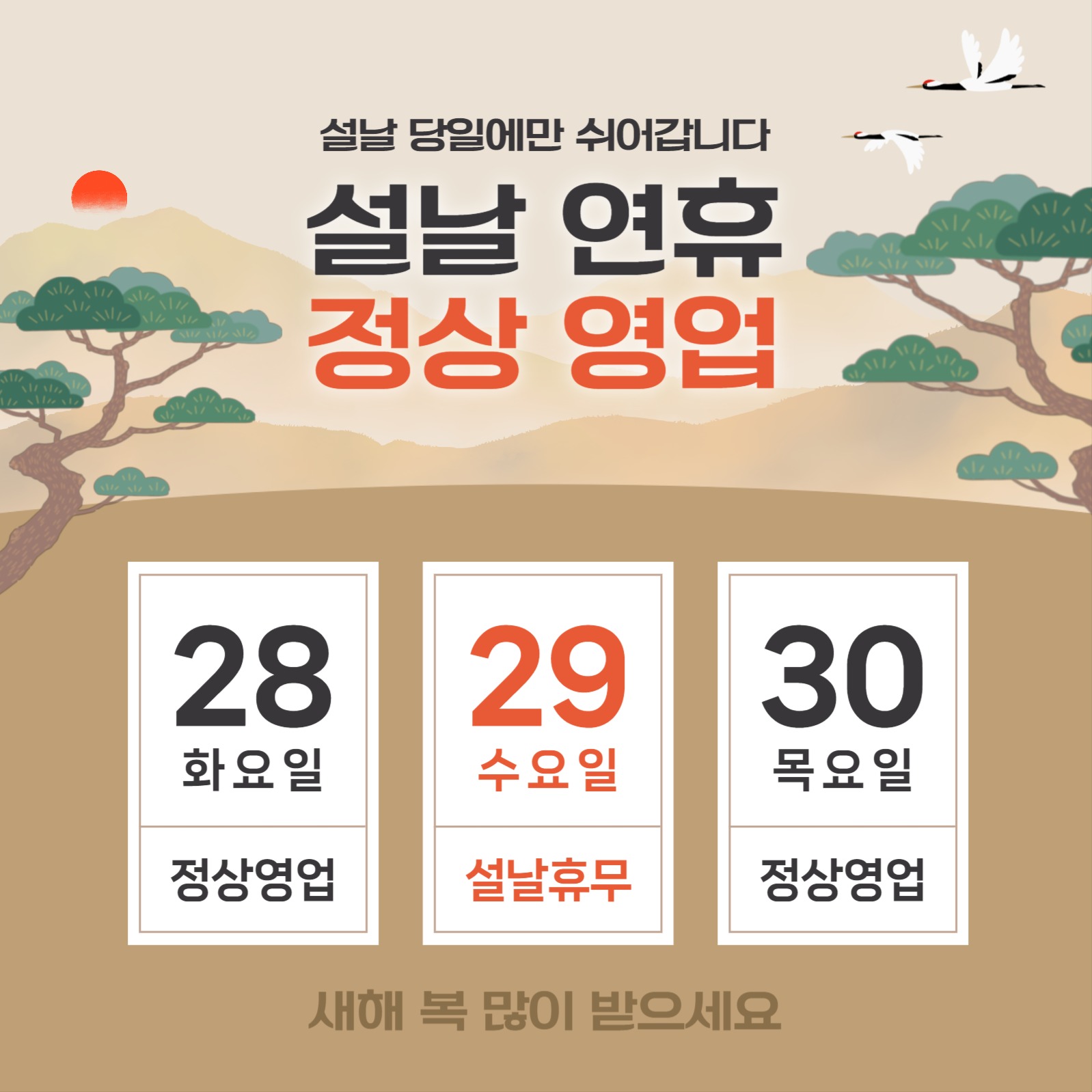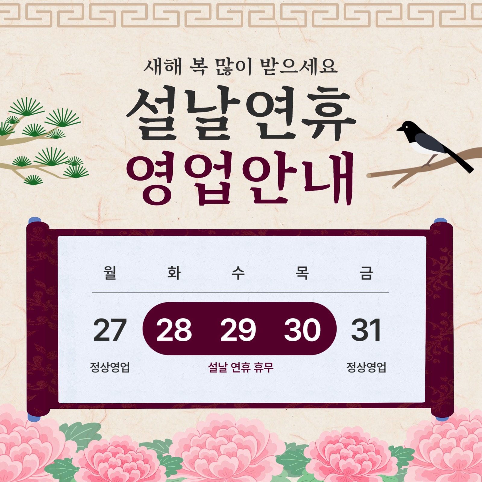 설날 연휴 영업 안내