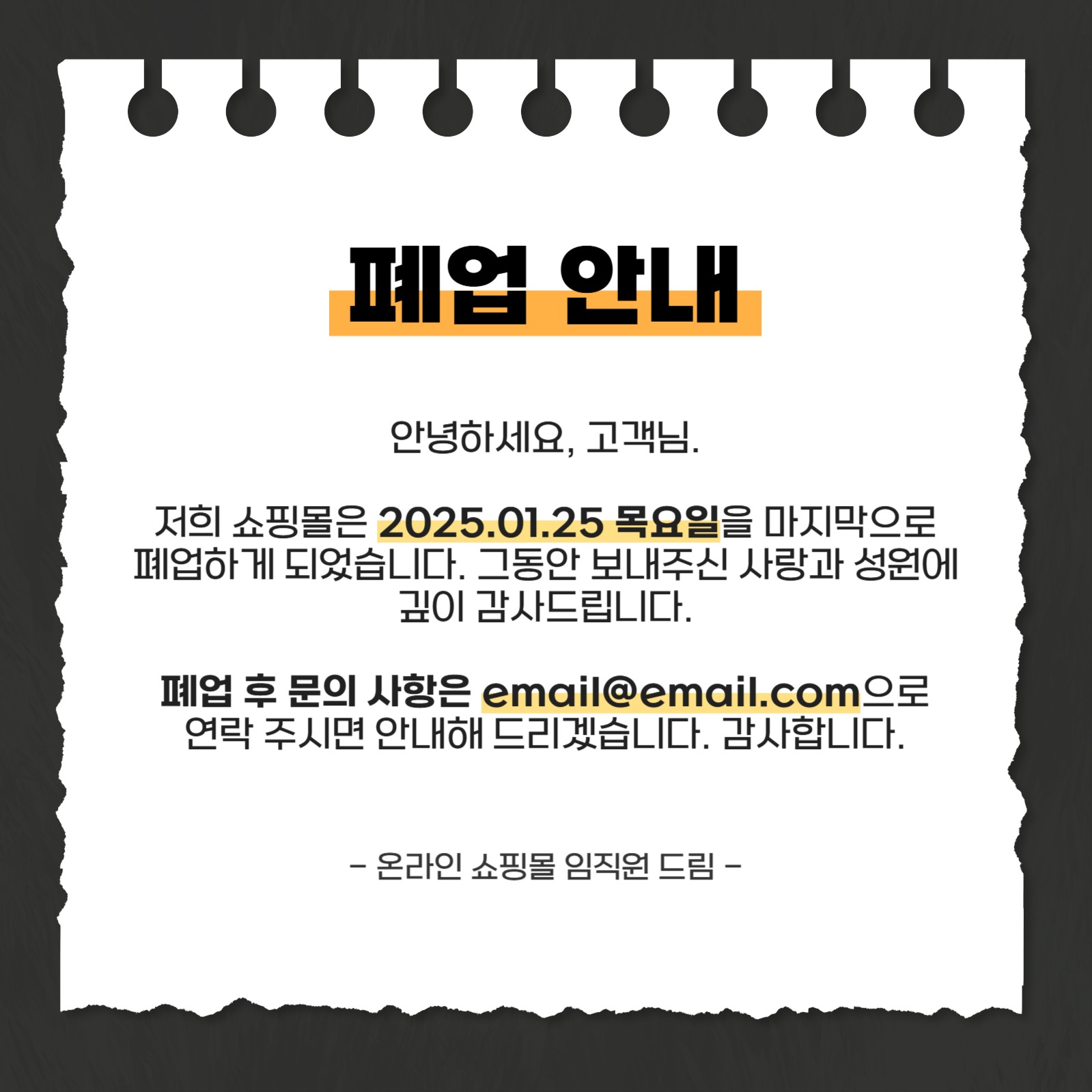 쇼핑몰 폐업 안내 문구 배너