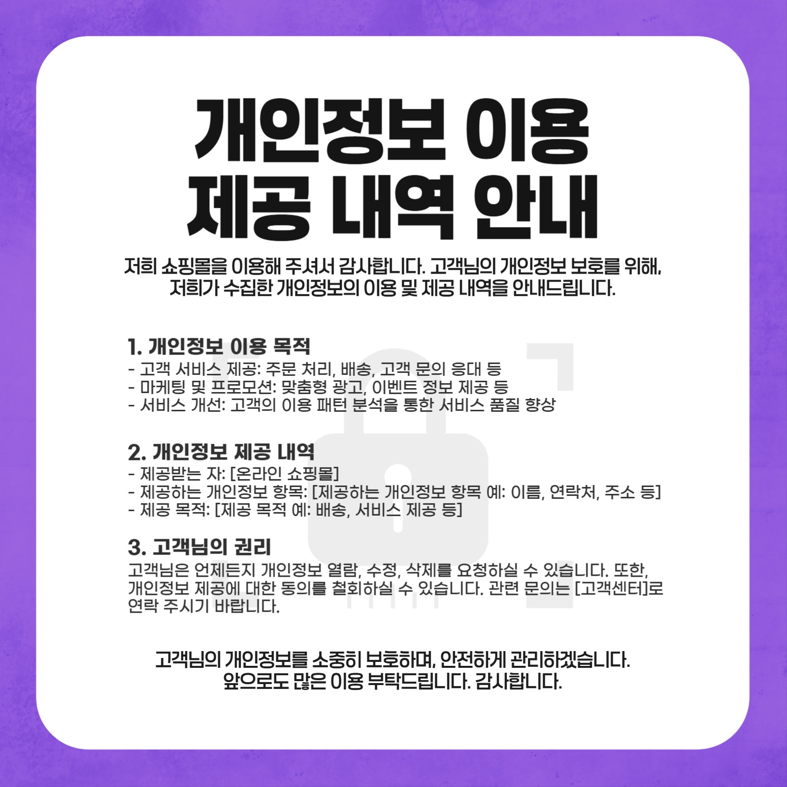 쇼핑몰 개인정보 이용 안내 배너