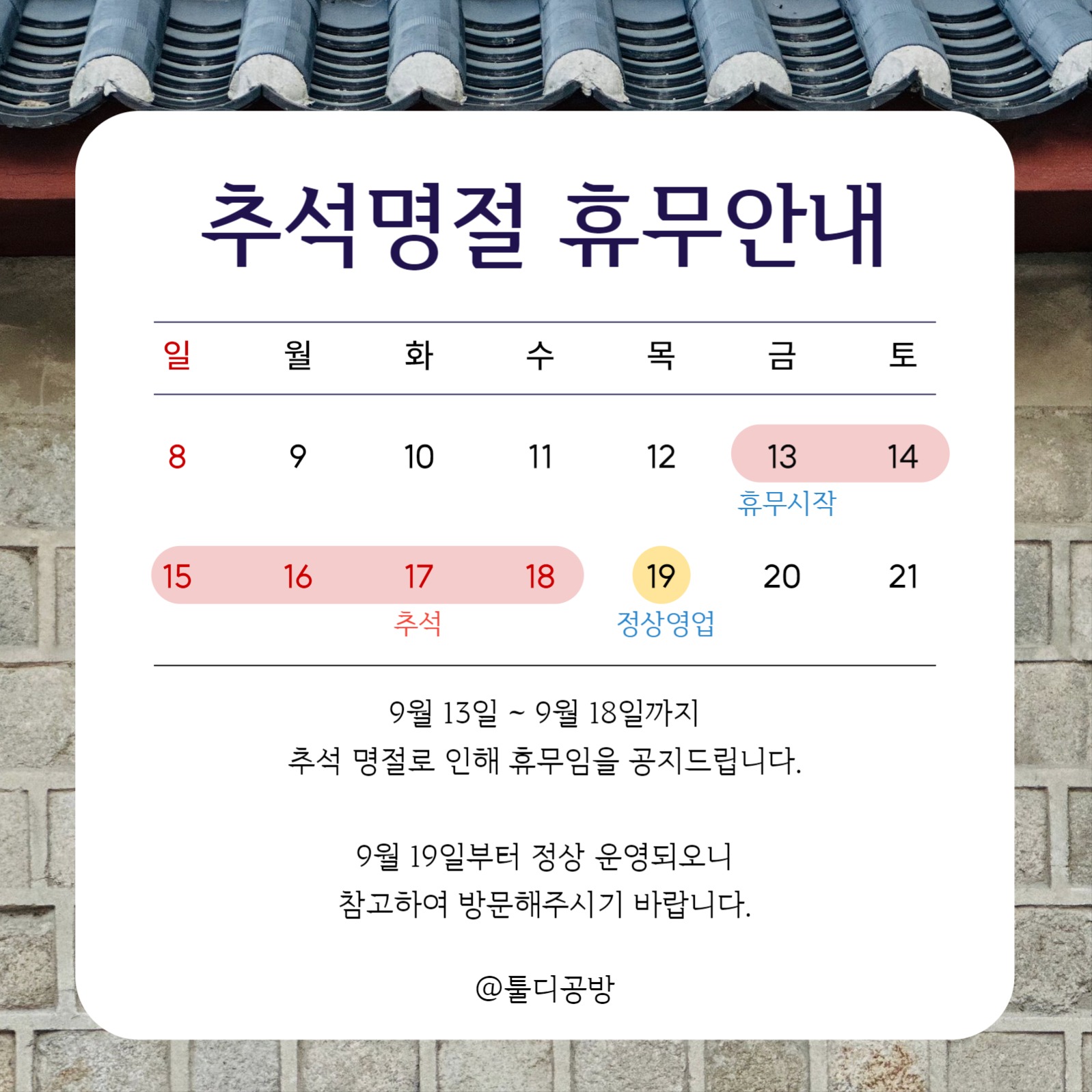 휴무안내 게시글