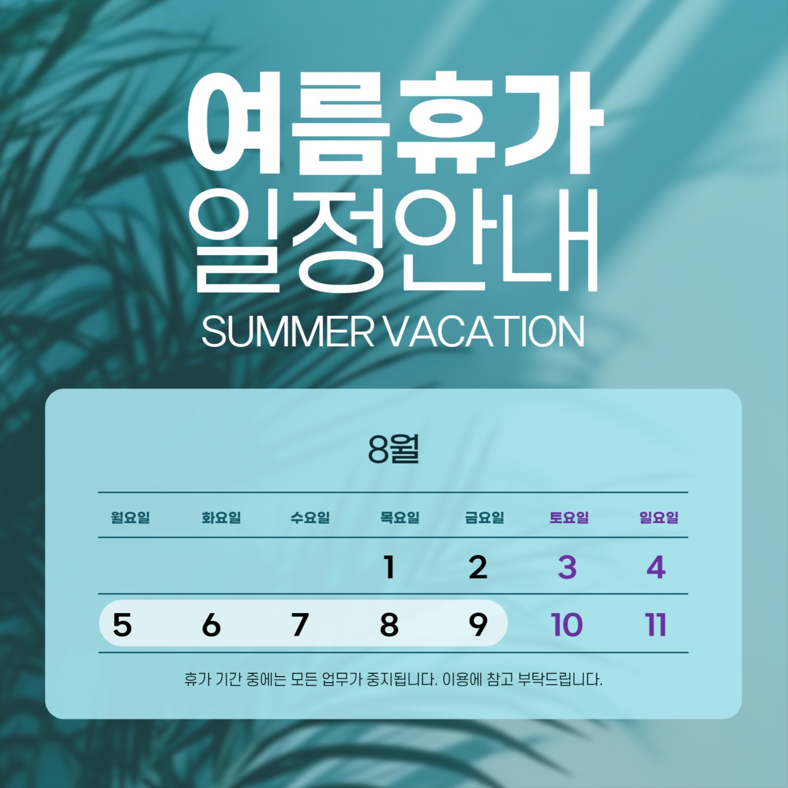 여름 휴가 안내 템플릿