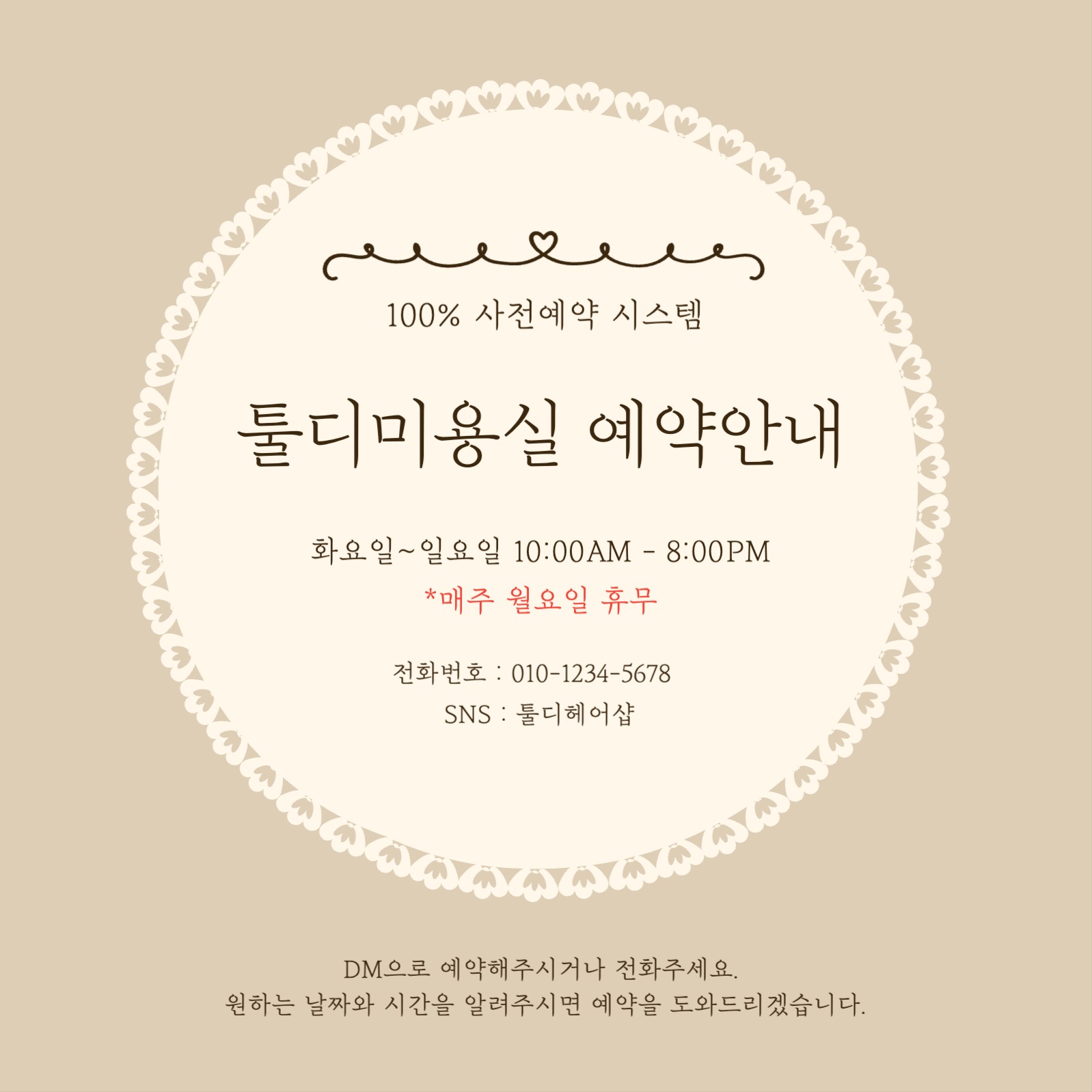 sns 미용실 예약안내