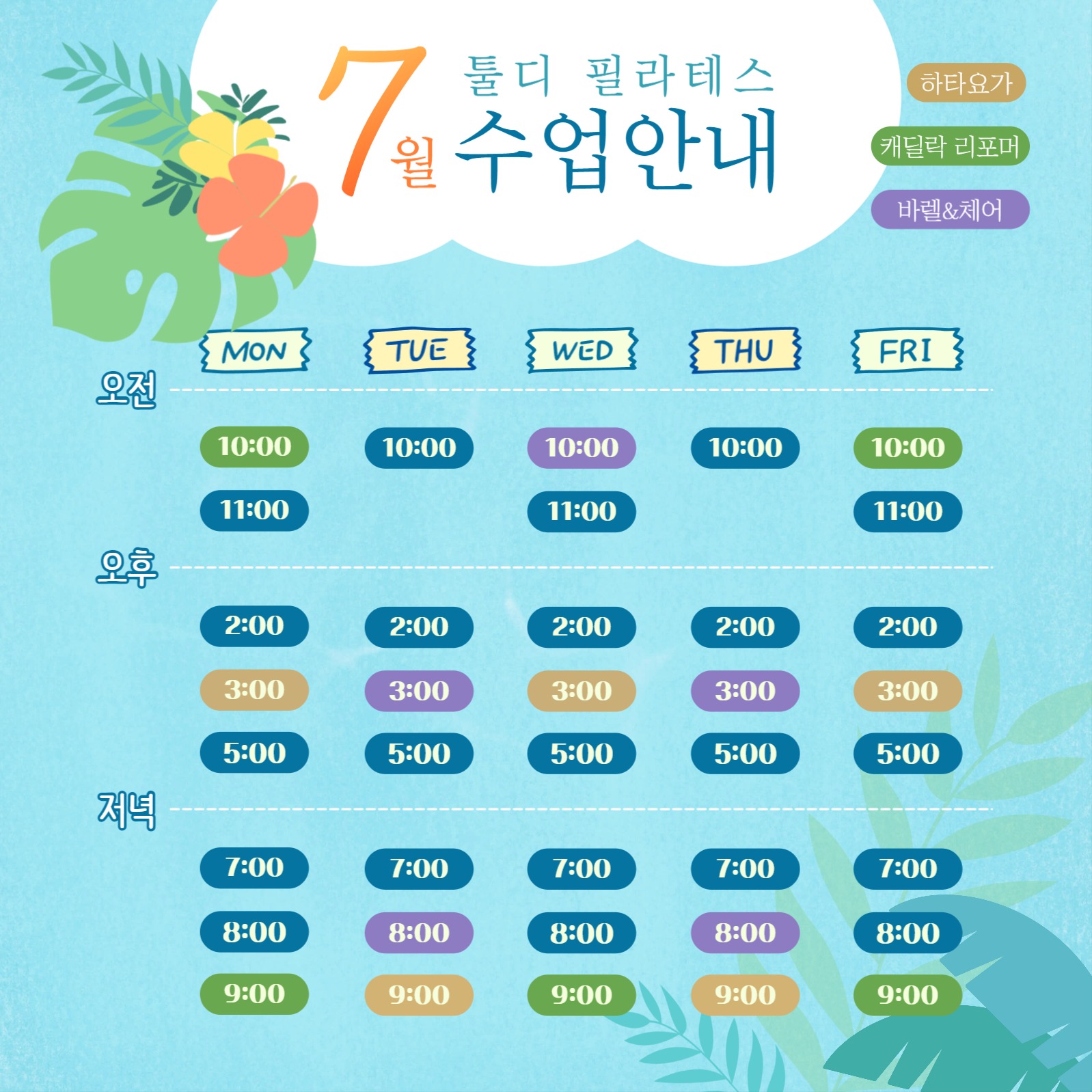필라테스 수업일정표