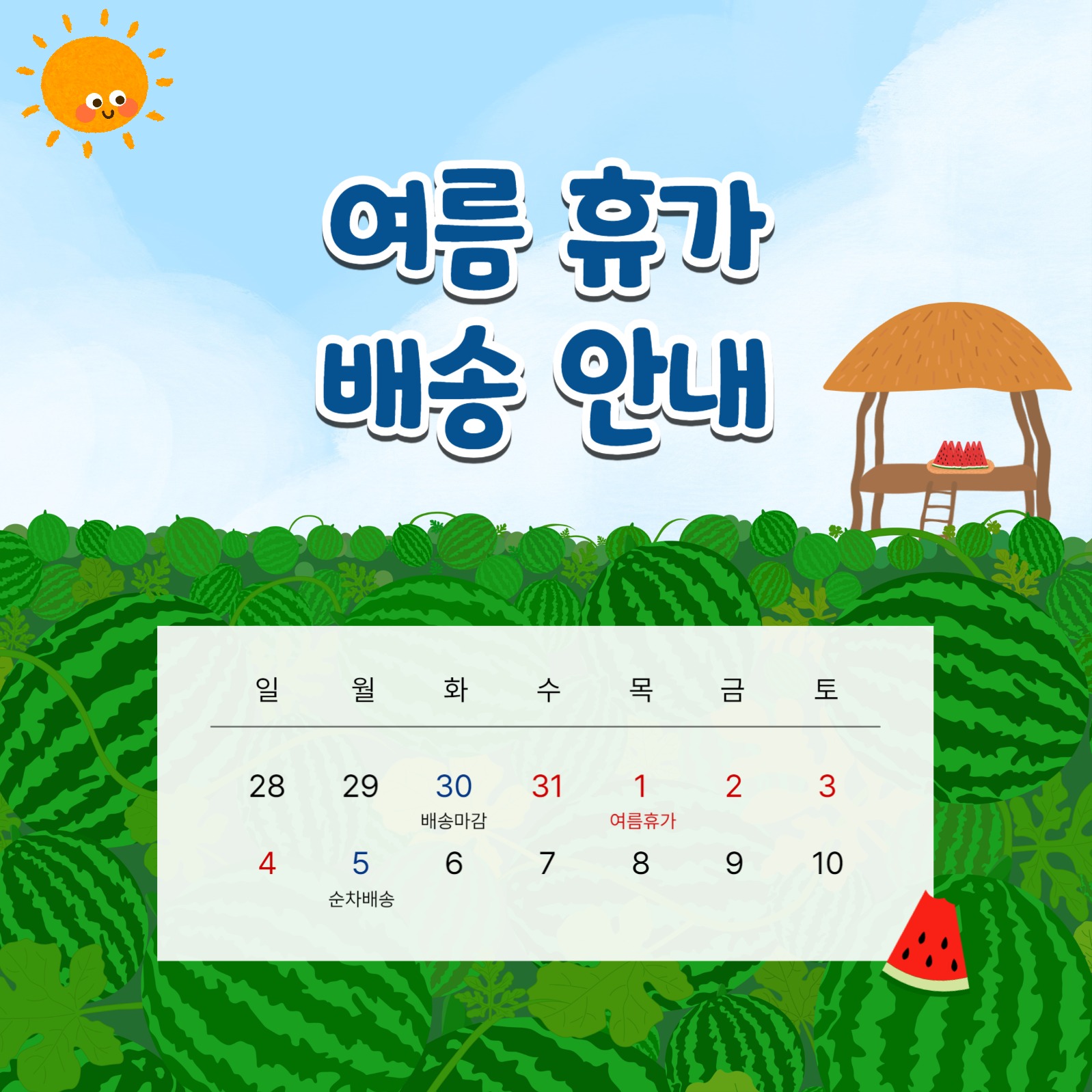 수박밭 배경 여름휴가 배송안내