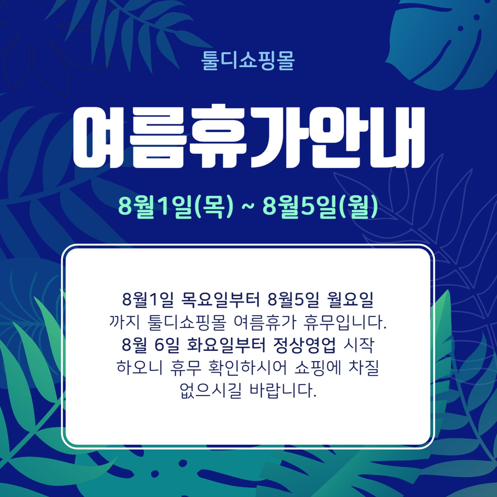 여름 휴가 공지 인스타그램 게시글