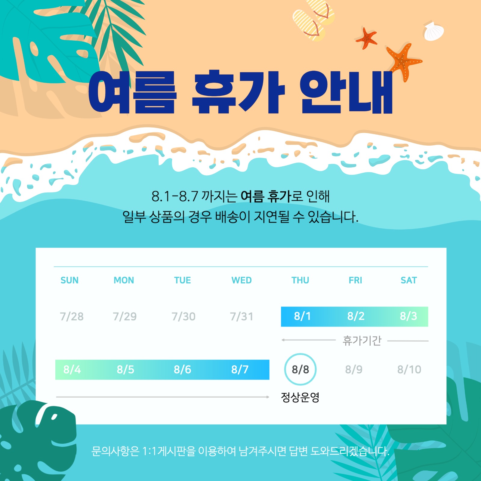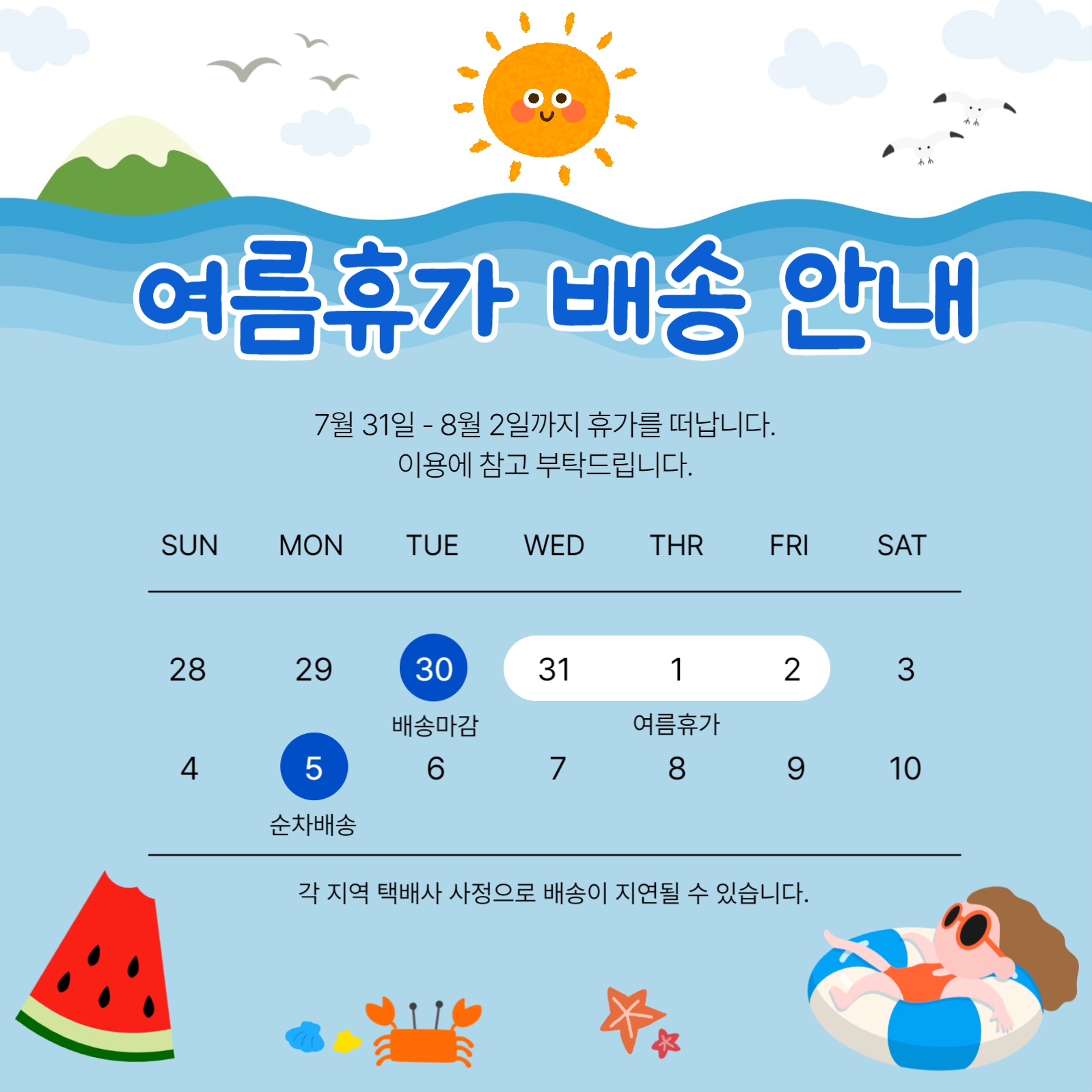 여름휴가 배송안내
