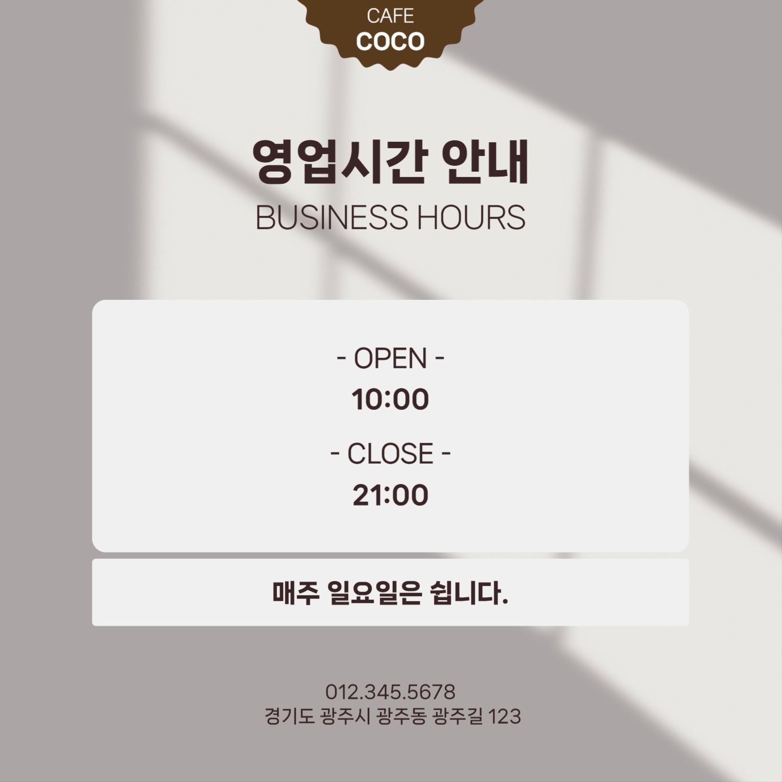 카페 영업시간 안내