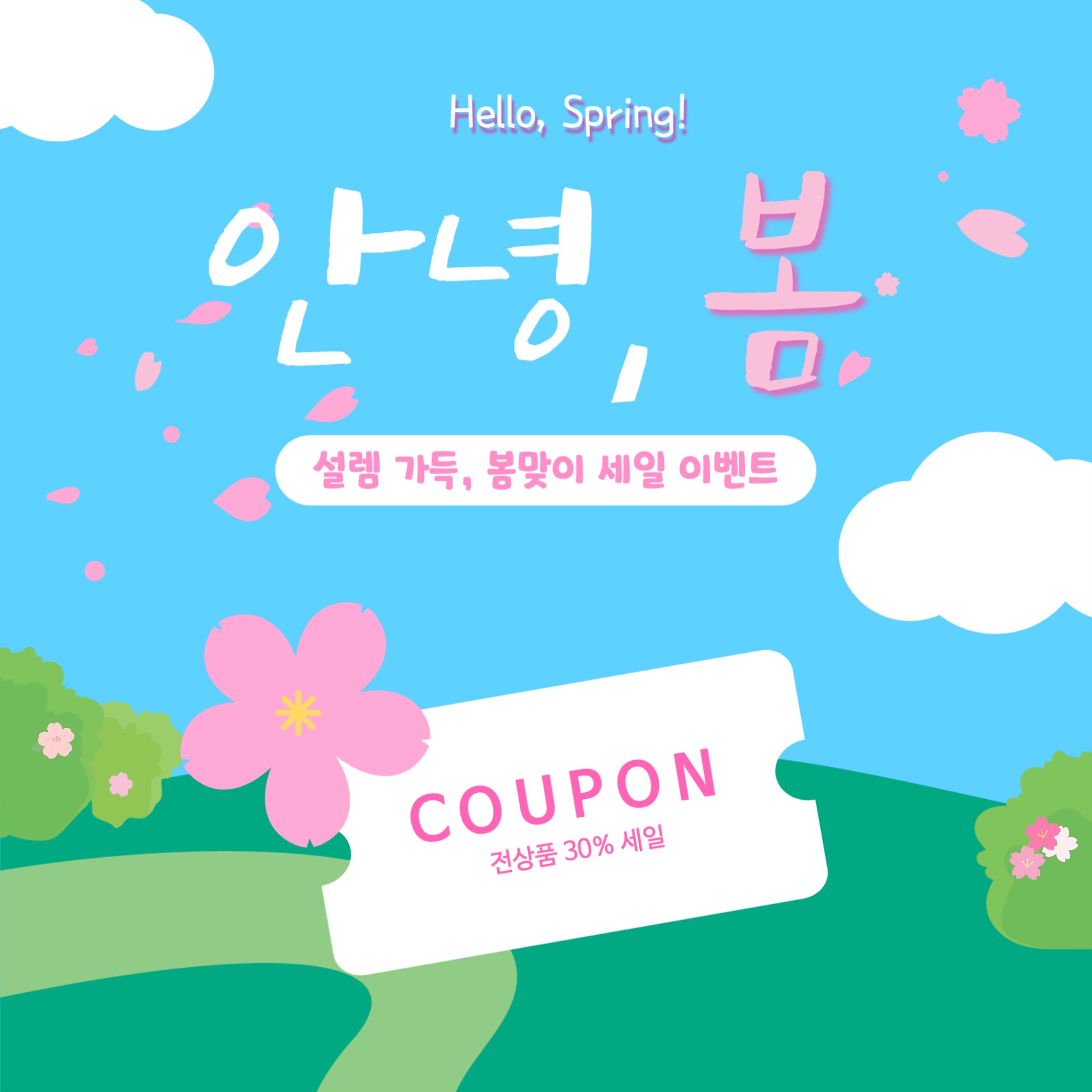 안녕, 봄 벚꽃 봄이벤트 세일 광고