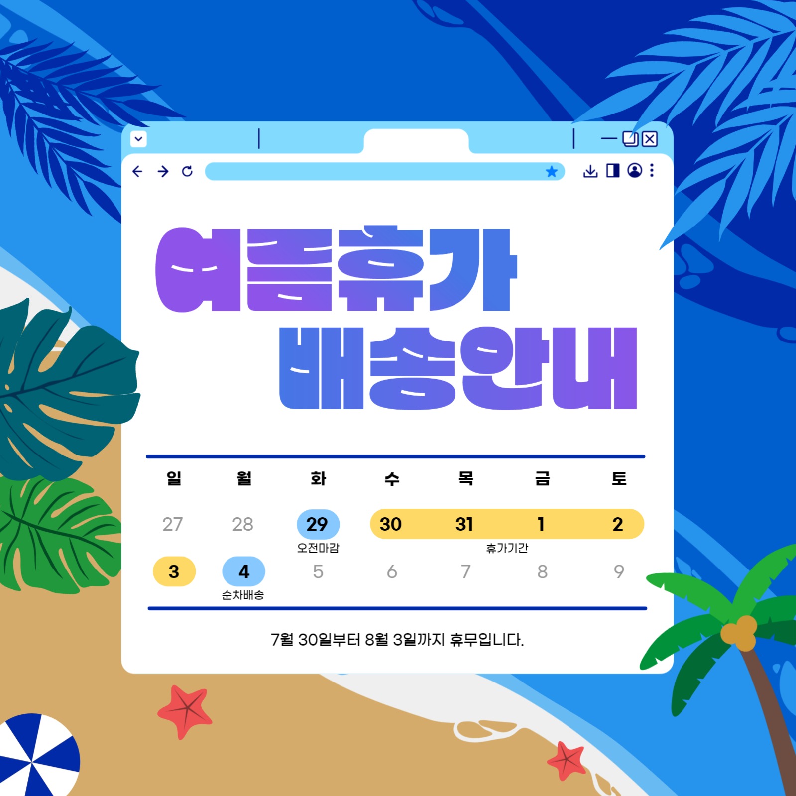 여름휴가 배송안내