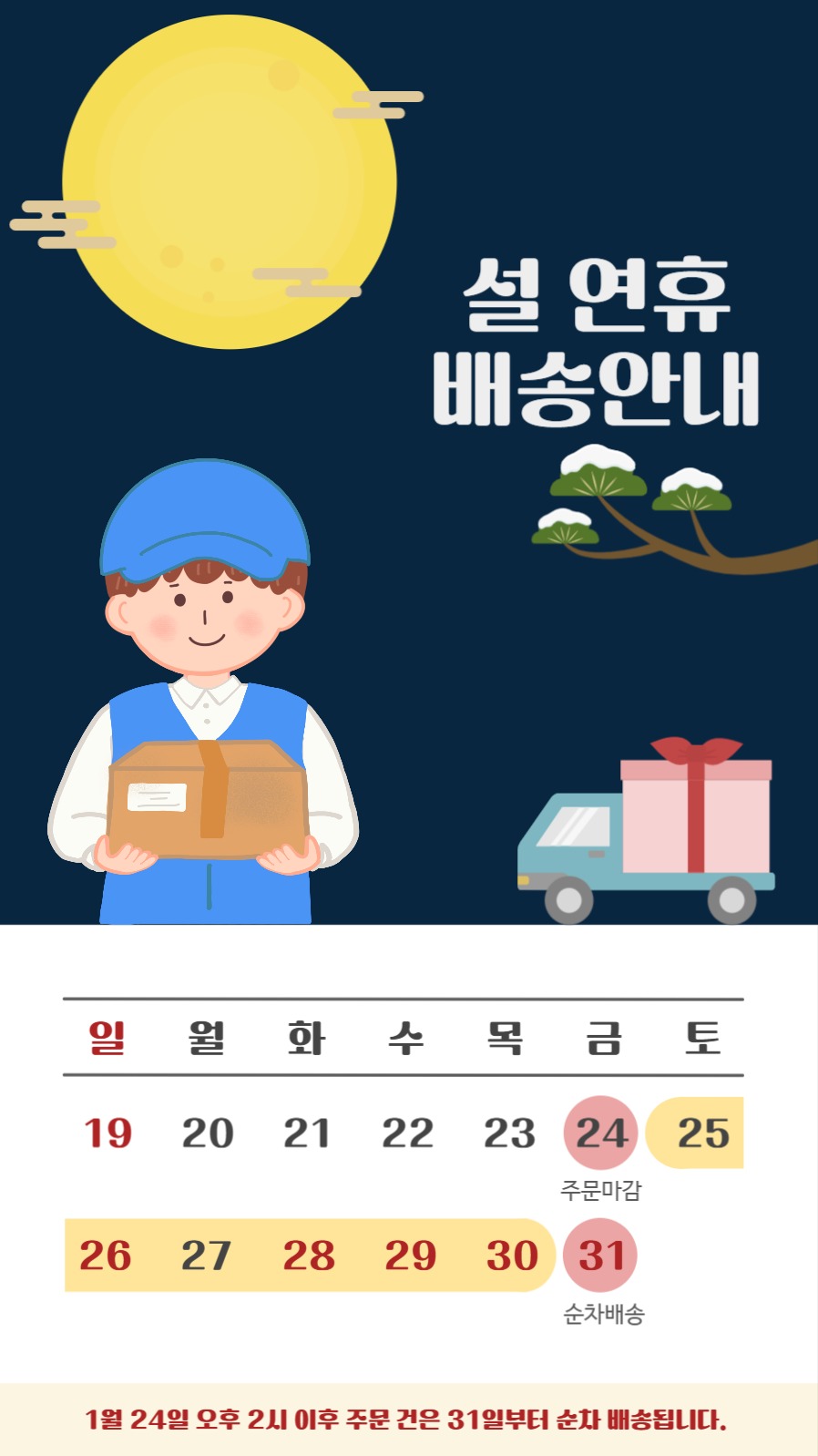 설날 배송 일정 안내