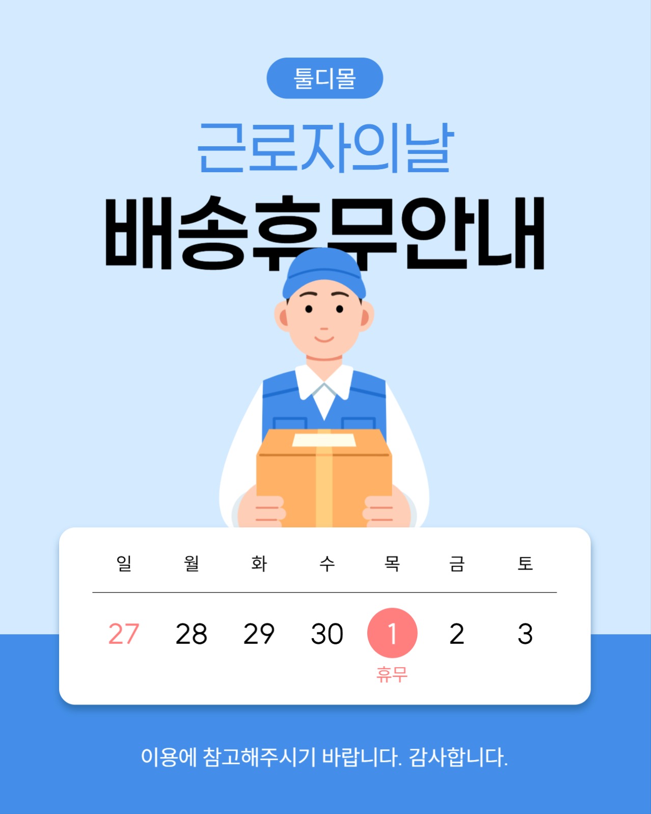 근로자의 날 배송 휴무 안내