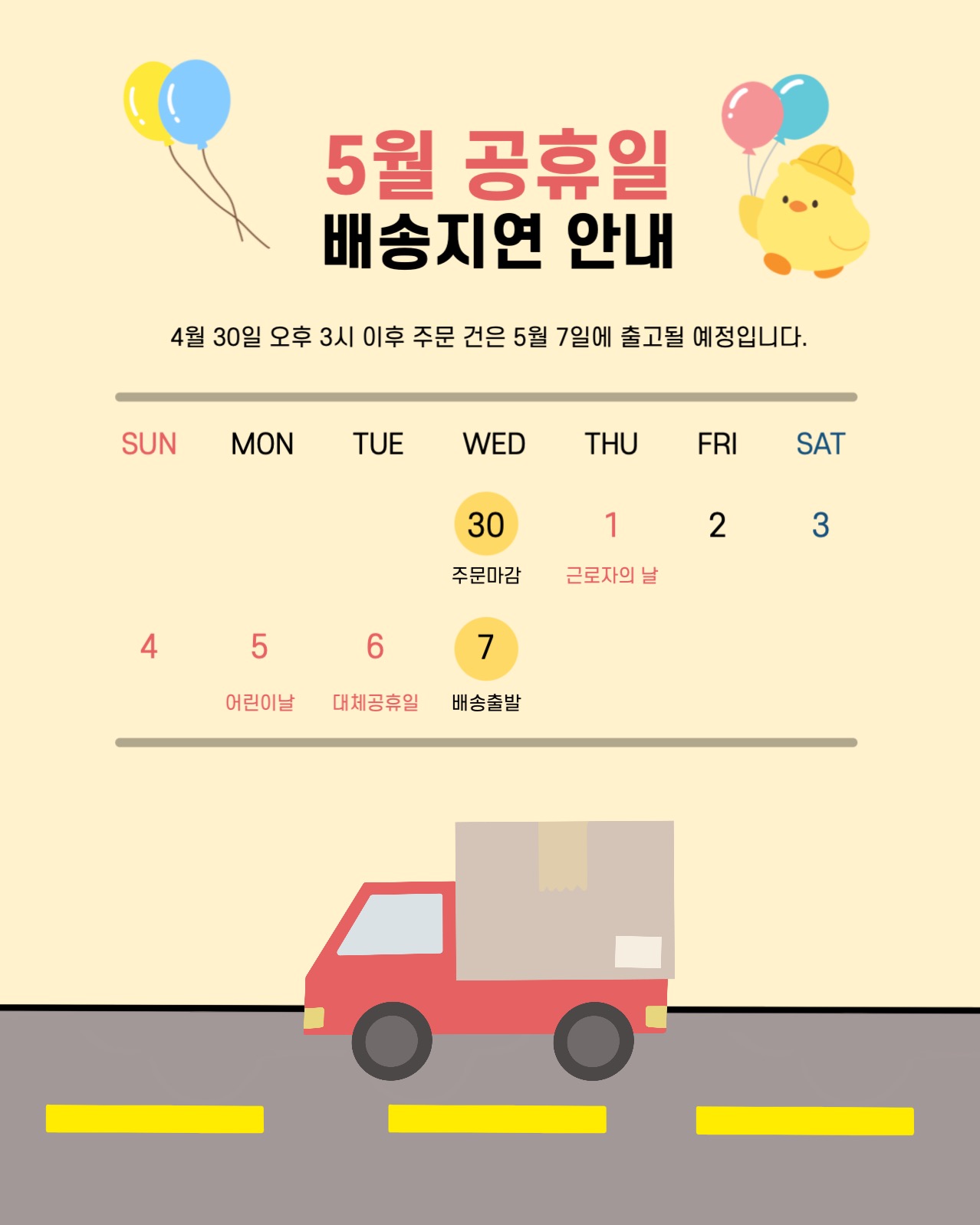 5월 공휴일 배송지연 안내