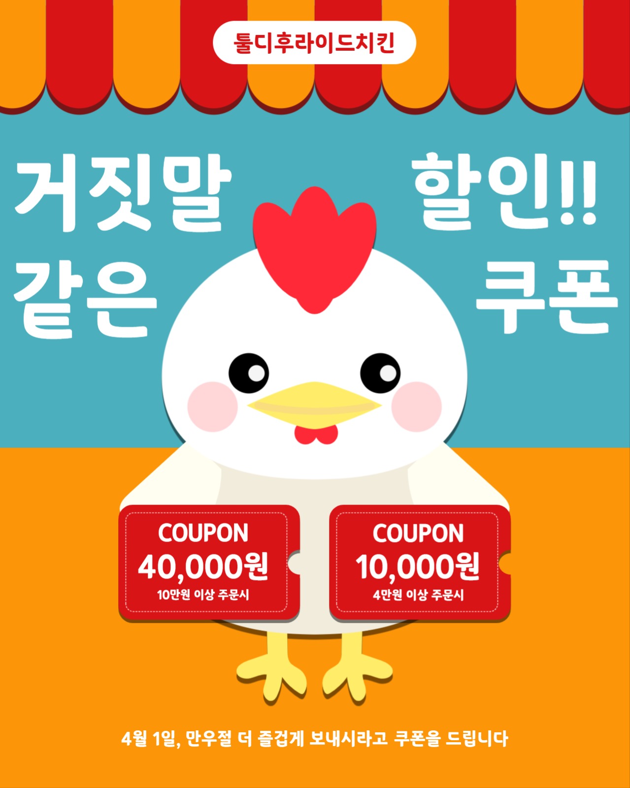 치킨 배달 주문 만우절 할인 쿠폰