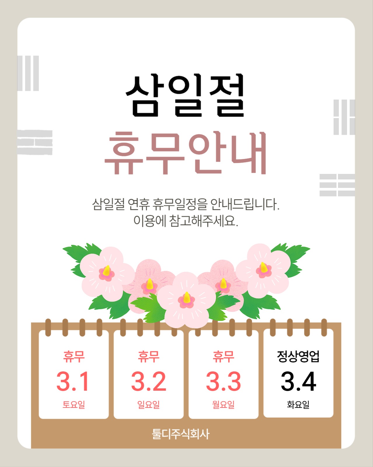 3월 휴무일 안내 sns 이미지