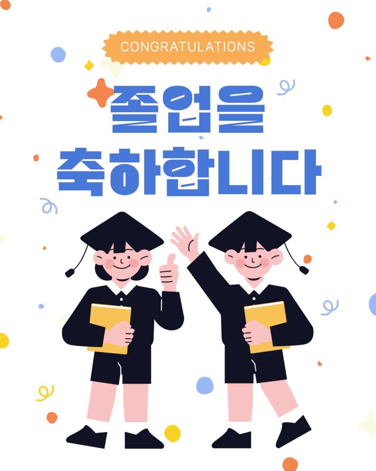 노랑 검정 귀여운 어린이 졸업 축하