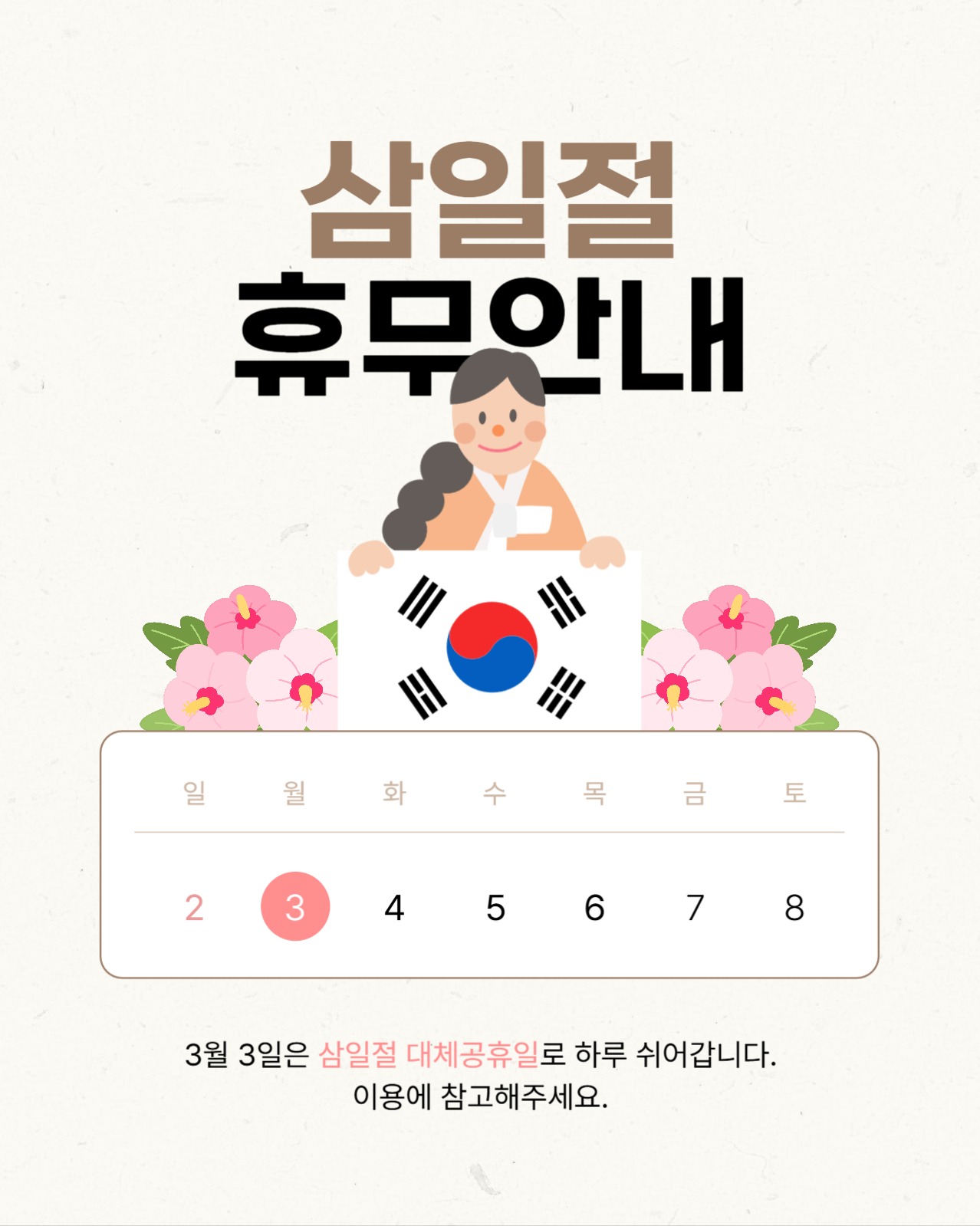 삼일절 휴무 안내