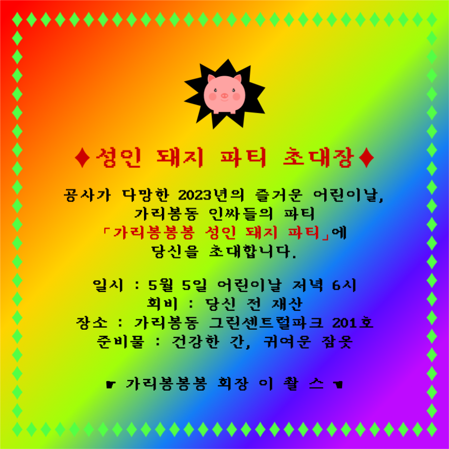 성인 돼지 파티 초대장